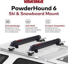 Yakima Ski & Snowboard Car Roof Rack, Fits 6 Ski Pairs or 4 Boards, PowderHound 6